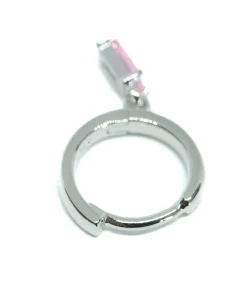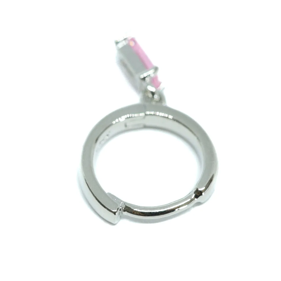 Este aro de plata está adornado con una hermosa zirconia rosa, añadiendo un toque de delicadeza y sofisticación a cualquier conjunto. Ideal para quienes desean complementar su estilo con una joya que resalte sutilmente.