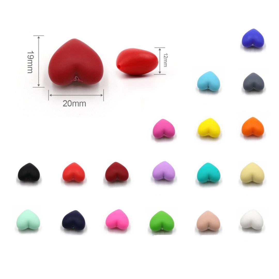 Abalorio de silicona en forma de corazón para chupetero y para la dentición de los bebés de 20x19mm.
