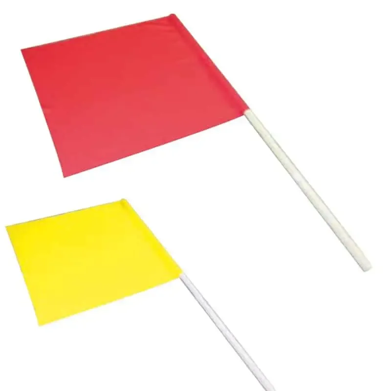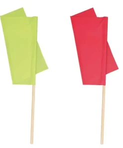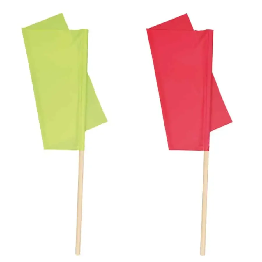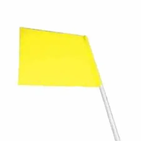 Esta bandera de señalización está fabricada con un mango de madera de 90 cm y una bandera textil de color roja o amarilla.