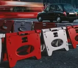 - Material de señalización fabricado en polietileno de alta densidad por soplado tiene un sistema de bisagra robusto y duradero, dándole unas características idóneas para su durabilidad y resistencia a los factores meteorológicos.