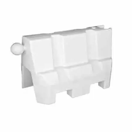 - Las barreras New Jersey de plástico tienen una capacidad máxima de llenado en interior de 55 litros, con un cómodo desagüe situado en un extremo de la barrera.