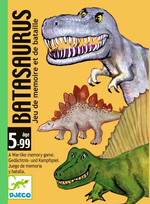 ¡El juego perfecto para amantes de los dinosaurios! Recuerda la puntuación de todos tus dinos para tratar de sacar la carta más alta. ¡Atención! porque si hay empate… ¡tenemos Batasaurus!