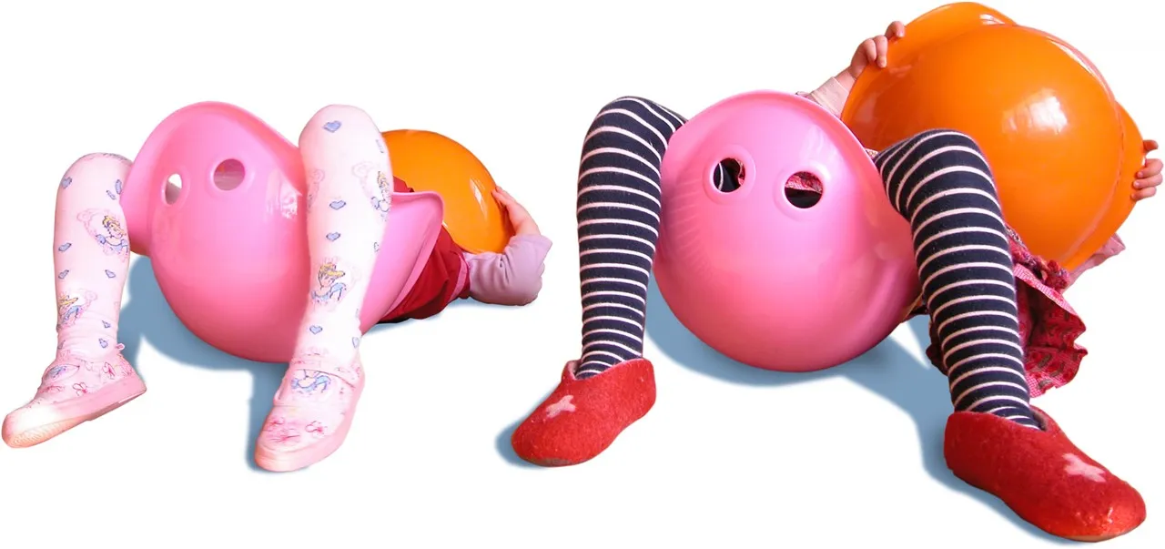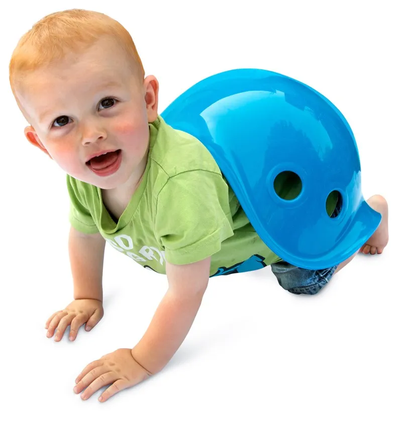 Los niños y las niñas encuentran formas ilimitadas de jugar con Bilibo, usándolo para mecerse y girar, esconderse debajo, sentarse, cargar y asomarse.