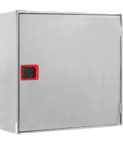 Está compuesta por armario horizontal construido en chapa de acero de 1 mm de espesor, pintado en color rojo RAL 3000, de medidas 630 x 610 x 245 mm, con puerta semiciega para metacrilato, y cerradura de apertura fácil, provisto de soporte de fijación del brazo y pretaladros para la entrada de alimentación, incluyendo devanadera, manguera, lanza, brazo abatible, válvula de asiento, manómetro y latiguilo de alimentación.