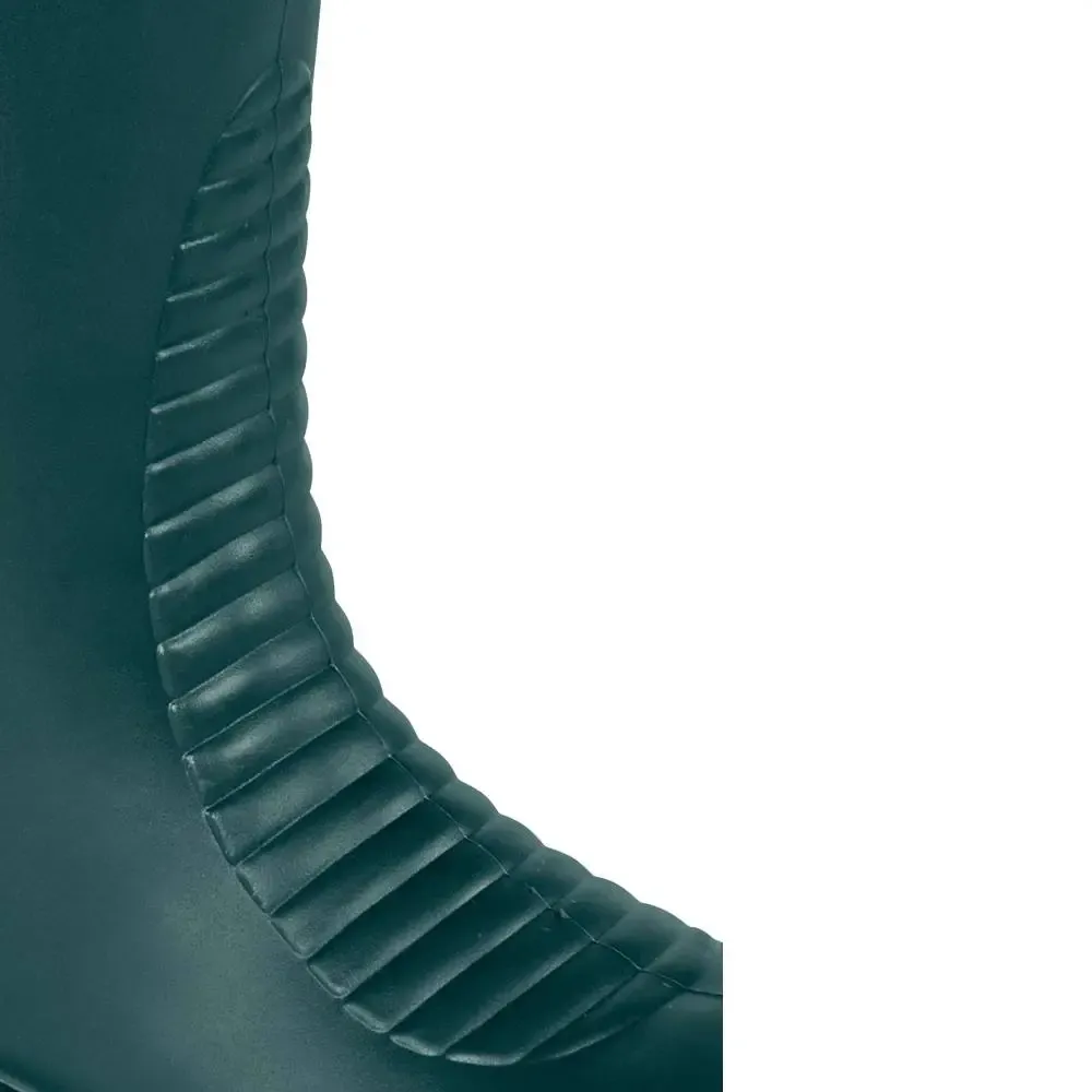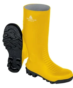 Botas de goma de seguridad en caña alta para trabajos con lluvia, humedad, barro u otras circunstancias en las que el trabajador necesite un calzado de seguridad que proteja del agua y mantenga los pies del trabajador secos.