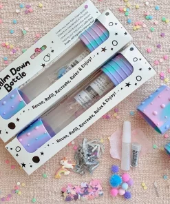 La galardonada botella DIY Calm Down es una botella sensorial única, en la que recibes todos los elementos creativos necesarios para crear una botella sensorial perfecta junto a tu peque. ¡Simplemente agregad agua tibia y una pizca de detergente líquido y estará lista para usar! Con esta opción, se puede rellenar y reutilizar la botella sensorial para disfrutar de infinitas opciones creativas.