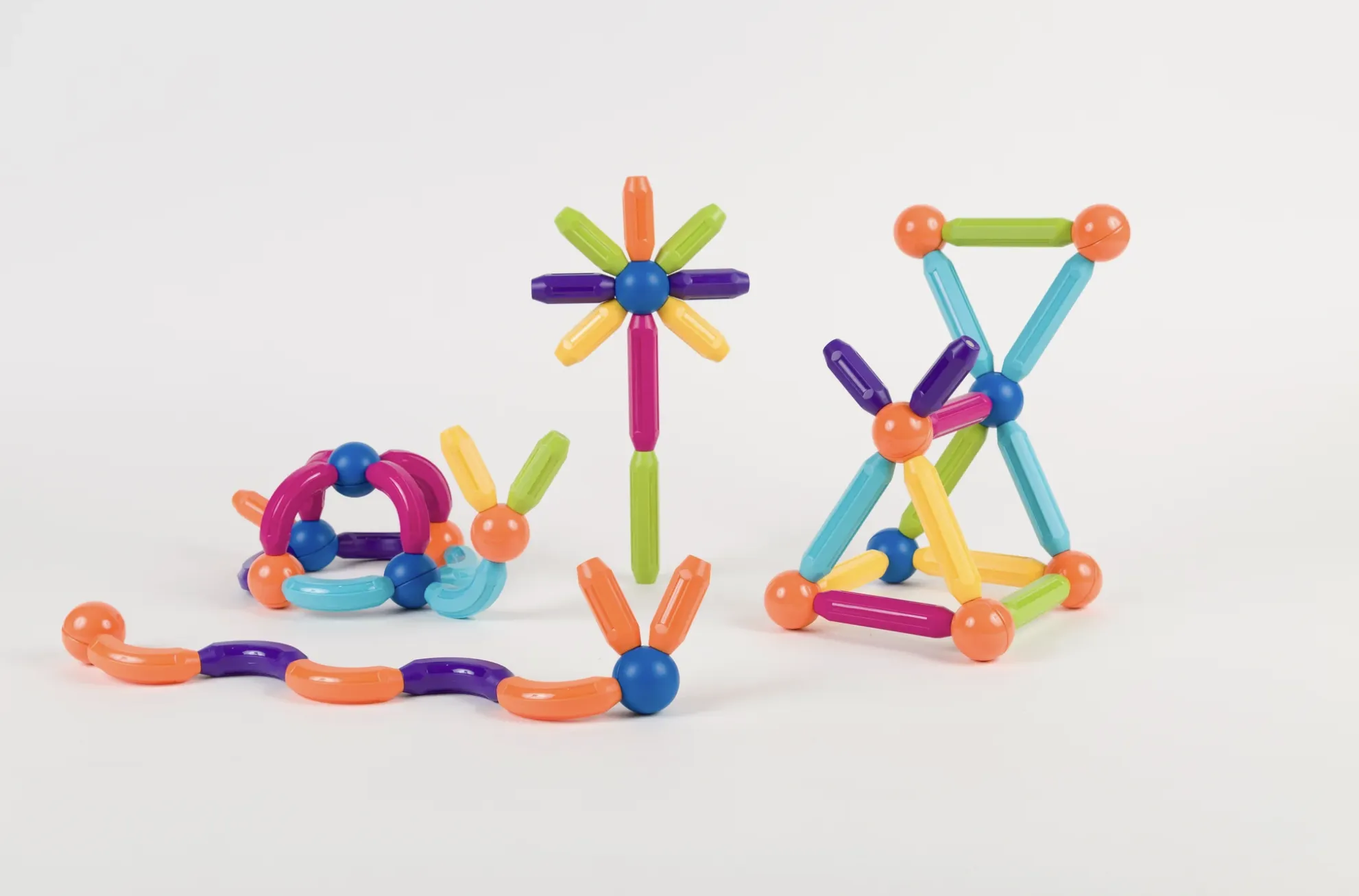 Sus juegos están fabricados de un material plástico ABS, no tóxico, libre de BPA, tolueno y látex. Presentan un tamaño adecuado, por lo que no son un peligro para niños en etapa de exploración oral.