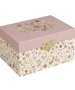 Esta caja es el lugar perfecto para guardar joyas y pequeños recuerdos. El joyero musical está decorado con el diseño Fairy Garden y en su interior hay un espejito.