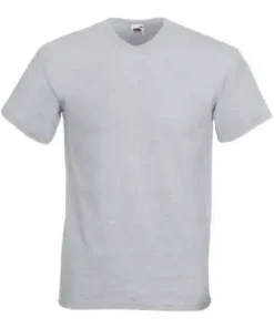 Camiseta cuello pico y manga corta de la marca Fruit of the Loom que ofrece un mayor espacio en la zona del cuello para quienes les sea incómodo un cuello redondo.
