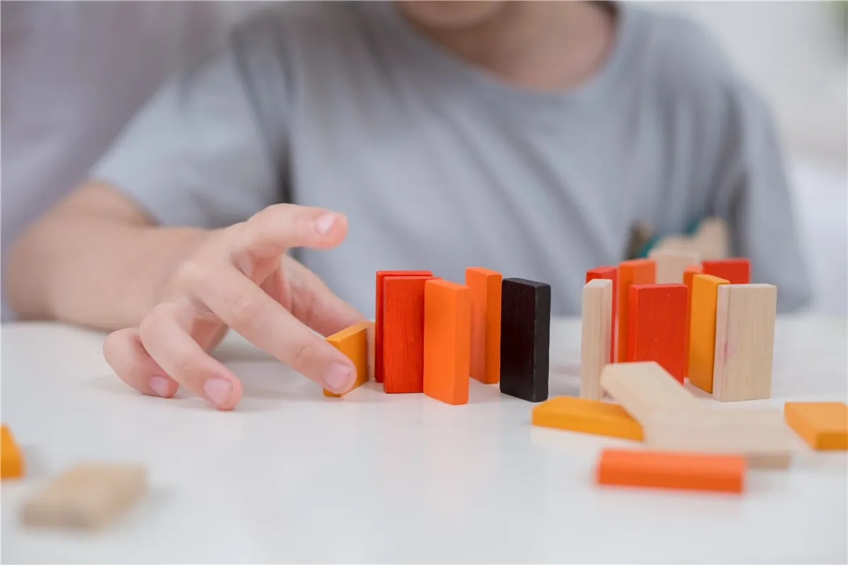 Construye una carrera de dominó con estos coloridos bloques. Crea una pista con tu imaginación y obsérvala derrumbarse. Los/as niños/as pueden aprender el concepto de causa-efecto con este conjunto de 22 bloques
