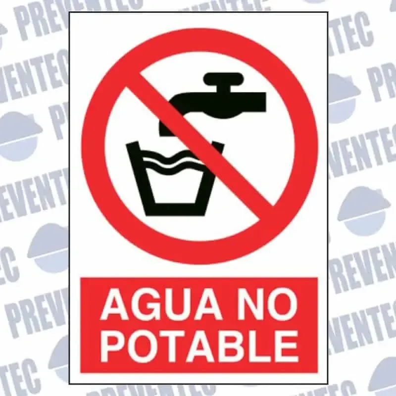 Esta señal de seguridad que nos informa de la prohibición de beber agua porque no es potable.
