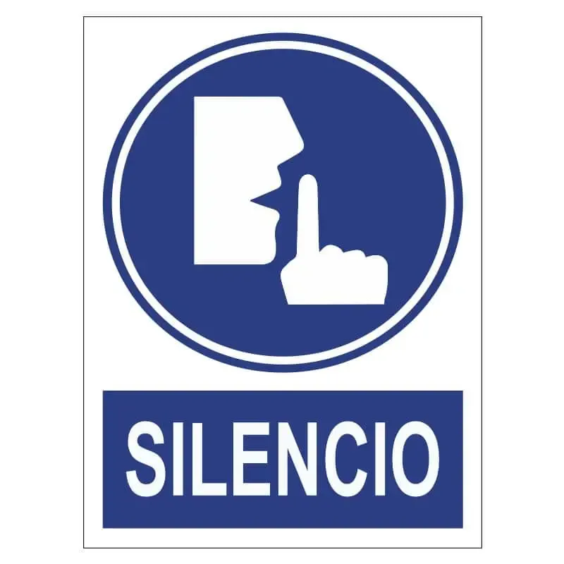 Cartel señalización silencio fabricado en material rígido ( poliestireno ) para ambientes en los que se requiere la ausencia de ruido.