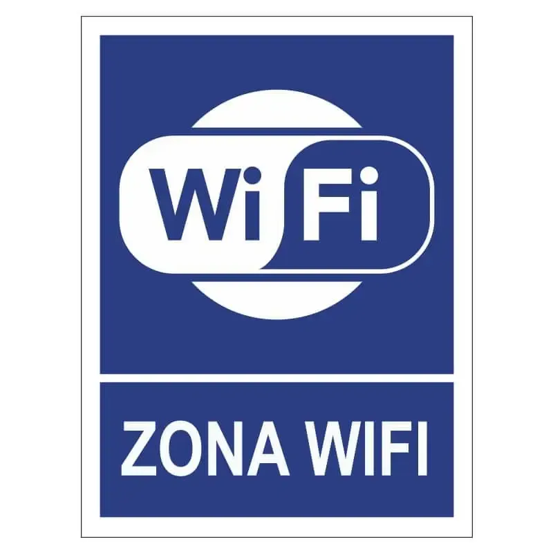 Señal zona wifi fabricada en poliestireno (PVC ) para indicar a las personas en que en ese área hay disponible una red inalámbrica para conectarse en red.