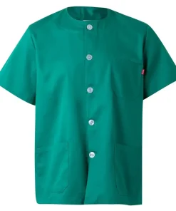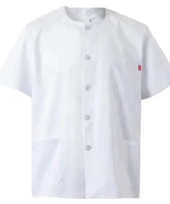 Esta casaca uniforme sanitario consiste en una chaqueta con cuello redondo y cierre con botones ideal para personas que trabajen en el sector sanitario, limpieza o comercios y hacen un conjunto pijama junto con los pantalones blancos sanitarios 334 o pantalones sanitarios de color 333.