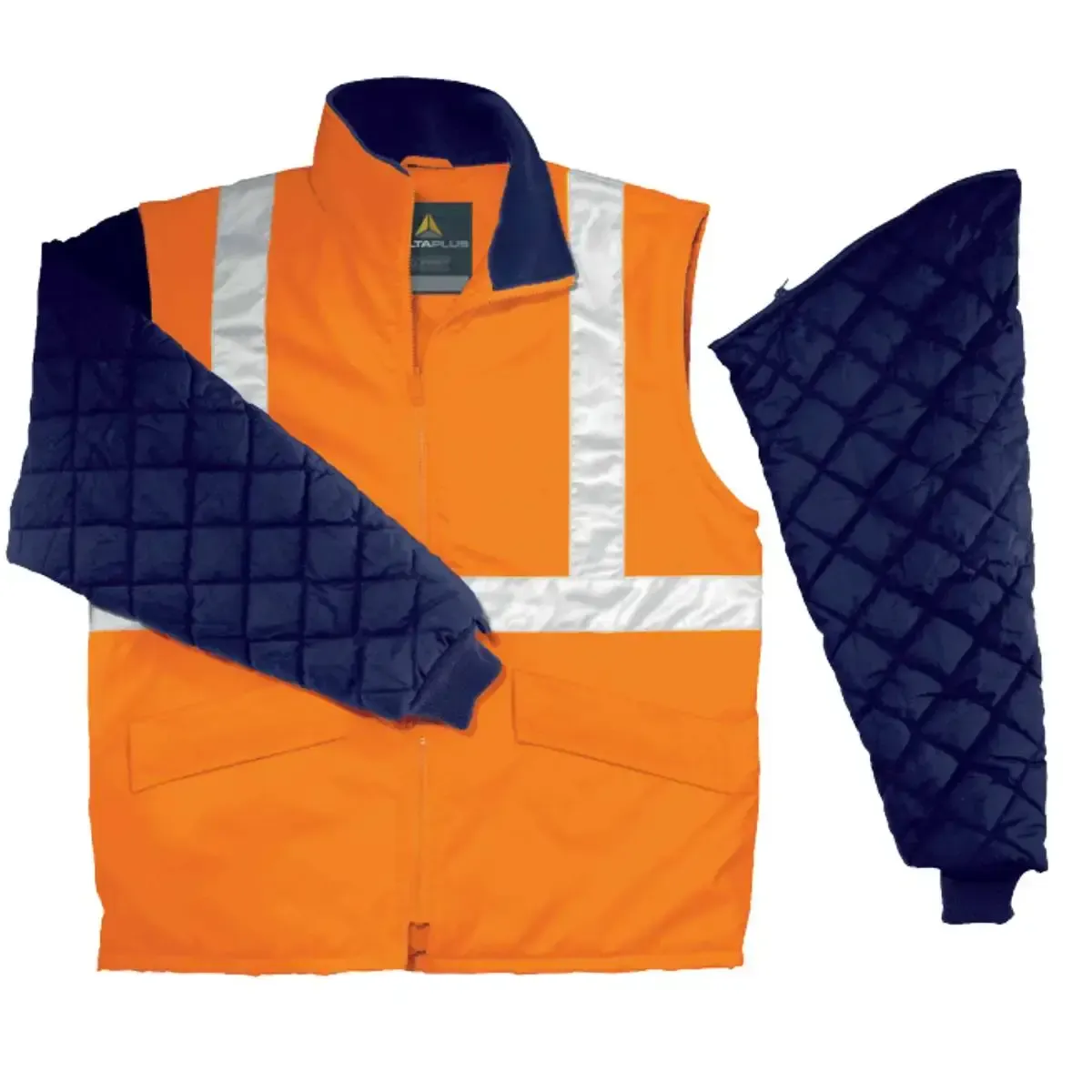 La cazadora alta visibilidad mangas desmontables Freeway de Delta Plus es una prenda que a parte de proteger del frio y cumplir con la normativa sobre ropa de alta visibilidad, tiene la opción de poder quitar las mangas y de esta forma facilitar la movilidad del trabajador en ciertos trabajos.