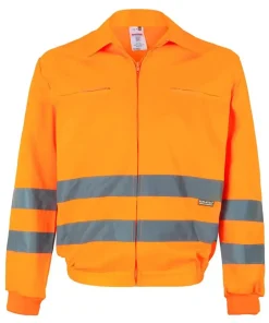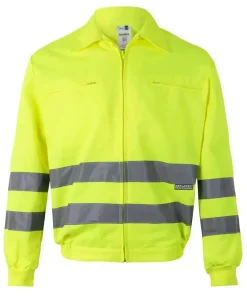 - Cazadora reflectante con dos bandas paralelas reflectantes en las dos caras de la prenda.