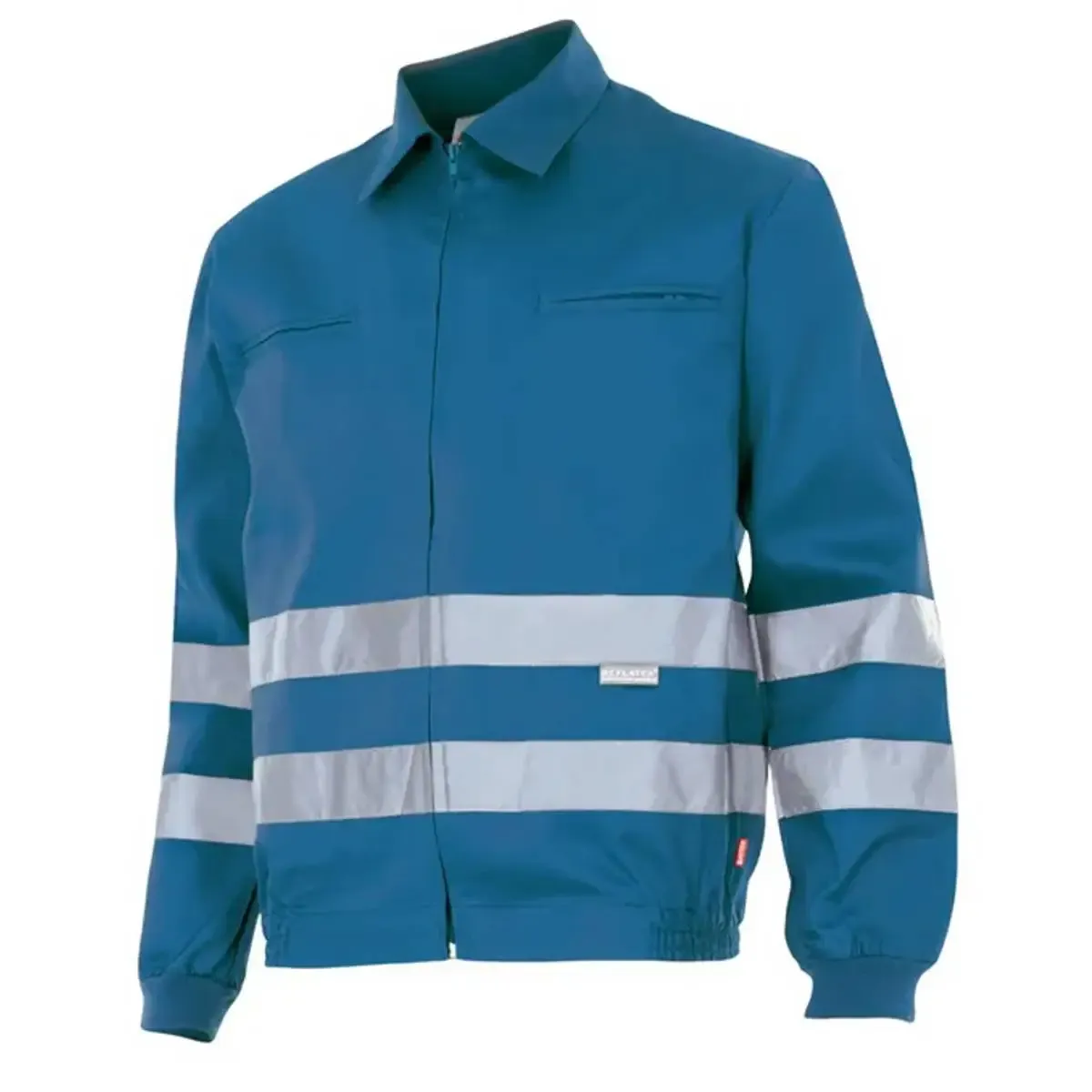 La cazadora reflectante trabajo modelo 154 de Velilla es una una cazadora de sarga ( poliéster-algodón ) en la que se le incorpora dos bandas reflectantes.