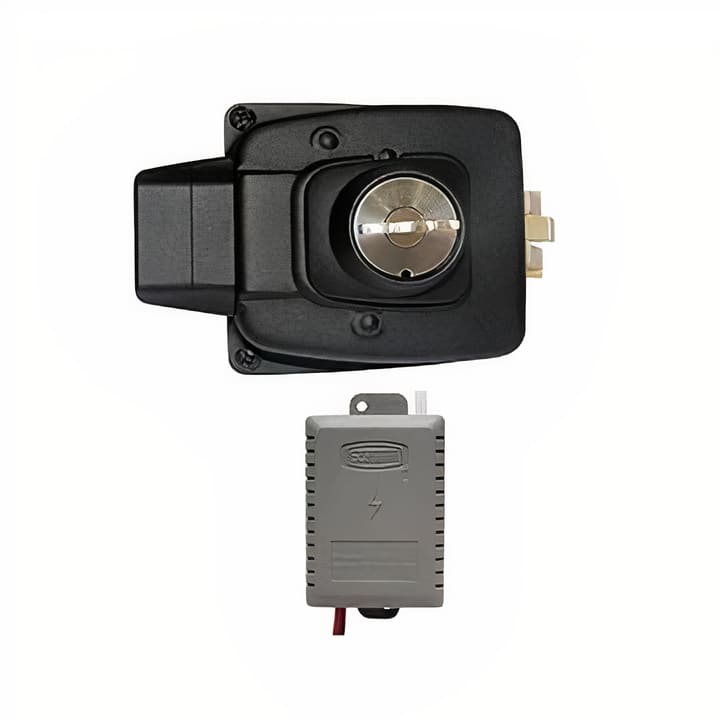 Cerradura Eléctrica Sobrepuesta Negra con Trasformador Scanavini