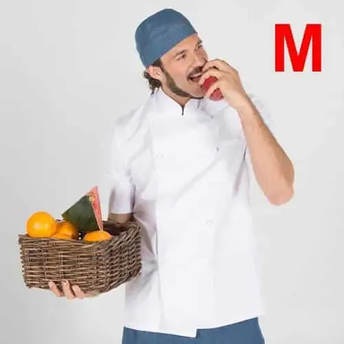 Chaquetilla de cocina dotada de un bolsillo y botones forrados que aportan un toque de elegancia y distinción a tu lugar de trabajo.
