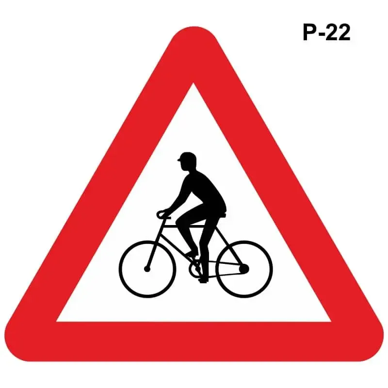 Señal de tráfico P-22 de peligro por zona de tránsito de ciclistas homologadas MOPU y en modalidad económica fabricadas en acero.
