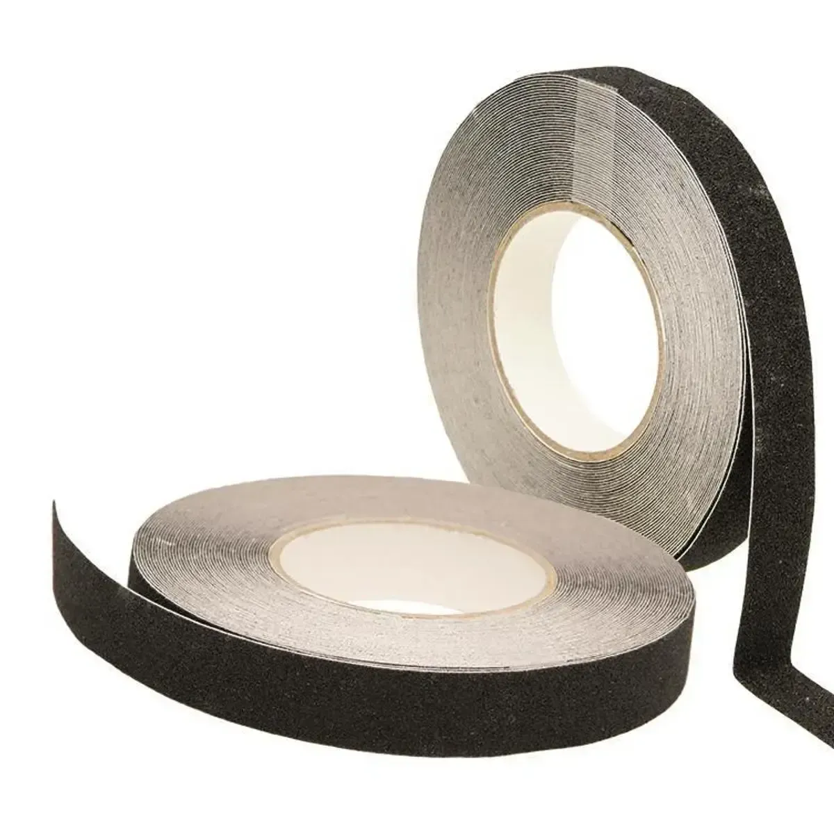 Cinta adhesiva antideslizante con dos medidas de anchura para instalarse en superficies resbaladizas o para prevenir posibles accidentes por resbalamiento.