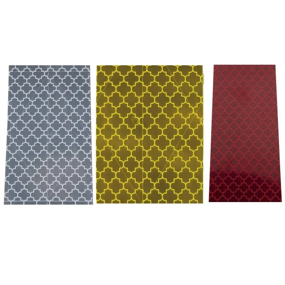 - Material : Es una lámina muy retrorreflectante, que consiste en lentes prismáticas en una resina transparente y duradera, sellada en una película y consolidada con un adhesivo sensible a la presión con un revestimiento protector.