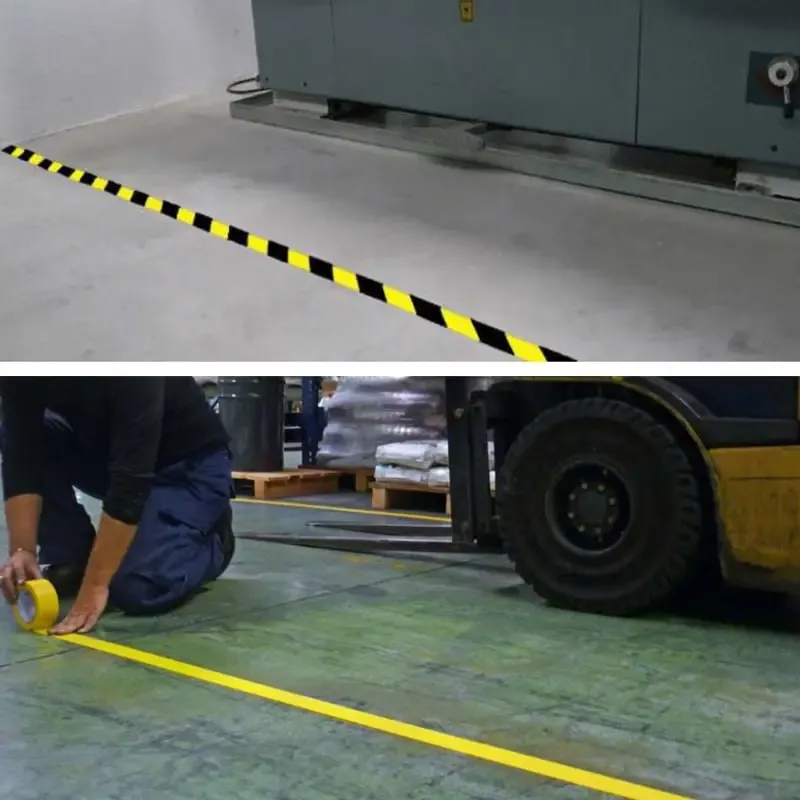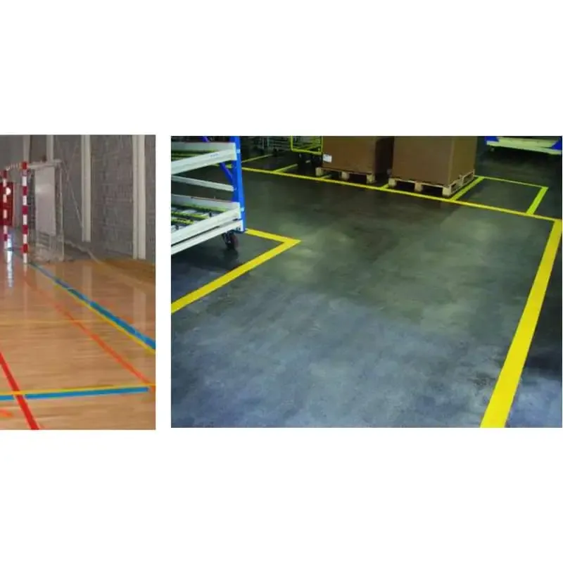 Cinta señalización adhesiva fabricada en base de caucho con mayor resistencia que las cintas de polipropileno y que nos permiten un marcaje rápido de seguridad en zonas de almacenaje, delimitación de áreas de trabajo, tránsito de personas, marcación de maquinaria y mobiliario de la empresa.