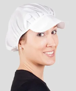 - Cofias unisex fabricadas con tejido sarga 65% poliéster y 35% algodón de varios colores con visera del mismo color.