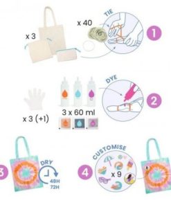 Contenido: 2 máscaras para decorar con 80 papeles ilustrados, 2 hojas de adhesivos de doble cara, 2 gomas elásticas. 2 molinos de viento para construir con 4 láminas ilustradas precortadas, 2 varillas de madera, 2 tapas de plástico. 1 caleidoscopio para ensamblar con 1 tubo ilustrado, 3 espejos, 1 receptáculo con tapa, 1 lente, 1 pinza pequeña, 11 discos ilustrados, 1 caja de almacenaje con un surtido de accesorios pequeños (50 piezas), 1 base ilustrada de almacenamiento. 6 láminas naturalistas para crear con 4 láminas de pegatinas (flora, fauna), 1 lámina de etiquetas, 1 bolsita de almacenamiento elástica. 1 carillón para personalizar con 2 láminas de calcomanías, 7 elementos ilustrados, hilo de algodón de colores y 5 cascabeles. 1 guía detallada con cada actividad.