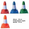 Estos conos son utilizados para delimitación de zonas de entrenamientos deportivos, escuelas, zonas de juegos, señalización de paso, obras, marcaje de zonas de carga y descarga, colectividades, etc.