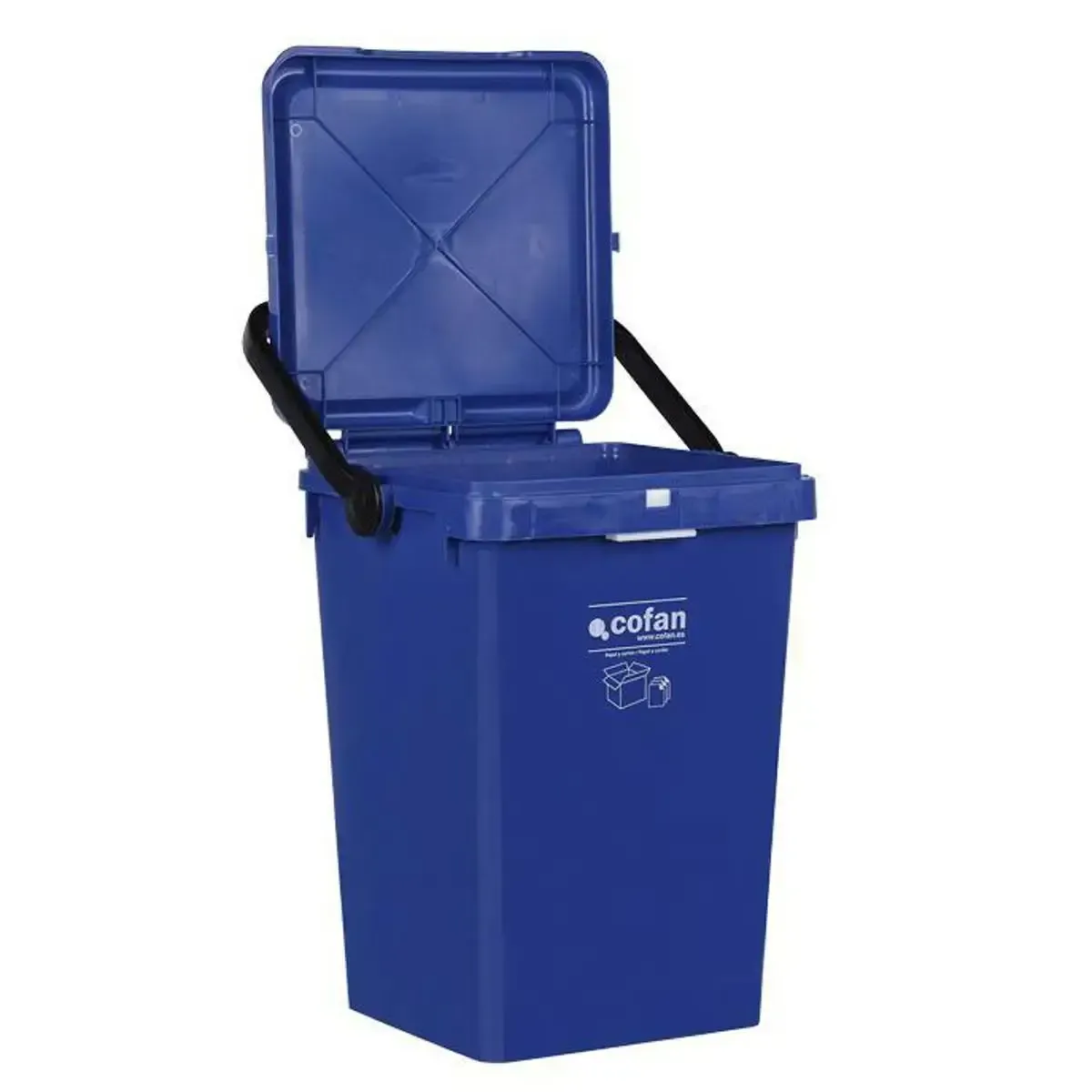 Contenedor para papel y cartón de la marca Cofan y con una capacidad de 25 litros con color azul para realizar una gestión sostenible de desechos.