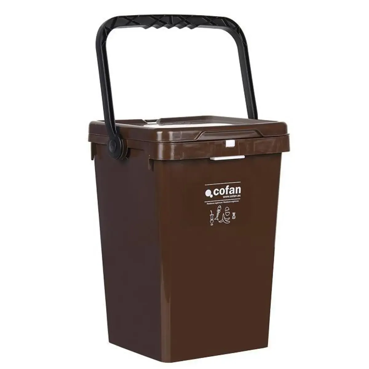 Contenedor para residuos orgánicos de color marrón y con una capacidad de 25 litros para tener una buena gestión sostenible de desechos.