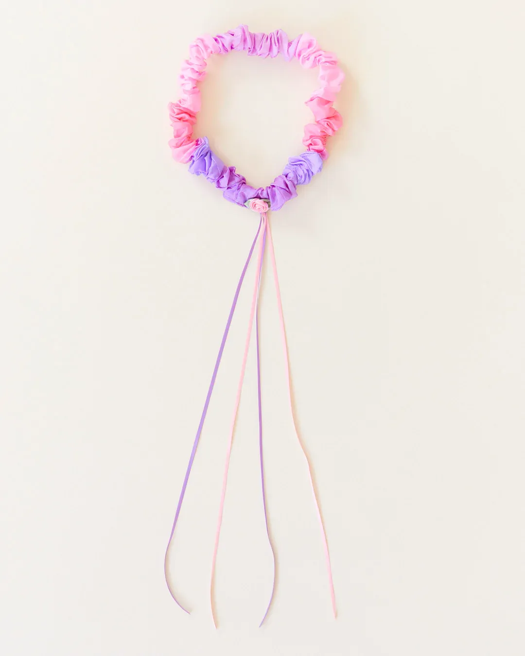 Las guirnaldas de seda cuentan con una banda elástica elástica (de 45 a 71 centímetros de diámetro), envueltas en 100% seda, pintadas a mano y serigrafiadas en los colores Enchanted. Se adapta cómodamente incluso a los/las pequeños/as con las pieles más sensibles.