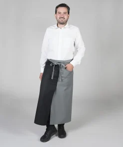 Delantal largo estilo francés con combinación de dos colores ideal para uniforme de camarero en bares, restaurantes y cafeterías, chefs o comercio en general.