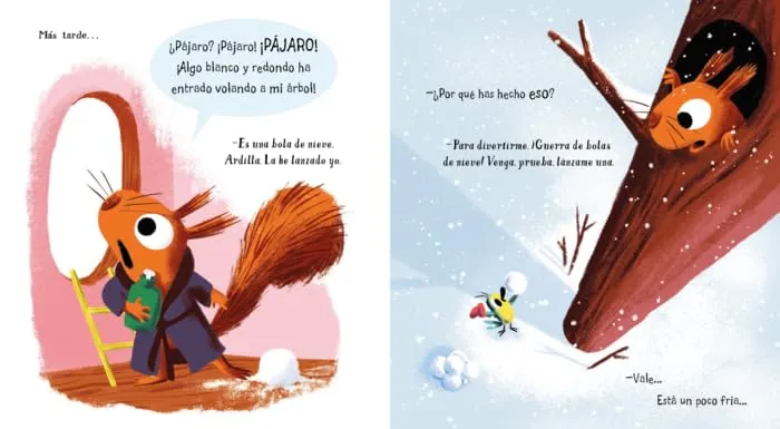 «¿Quién se ha llevado toda la nieve, Pájaro?» En esta nueva aventura, nuestro dúo formado por Pájaro y Ardilla se adentran en el invierno, estación que Ardilla va descubriendo de la mano de Pájaro. ¿Qué es eso blanco que ha entrado en la casa de Ardilla? ¿Qué pasa si Ardilla se come un copo de nieve? ¡Todas estas preguntas tendrán su respuesta!