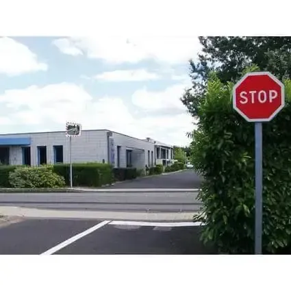 Espejo de tráfico en calidad P.A.S. con 5 años de garantía cuya principal característica es que en su marco hay bandas reflectantes que aumentan su visibilidad por la noche.