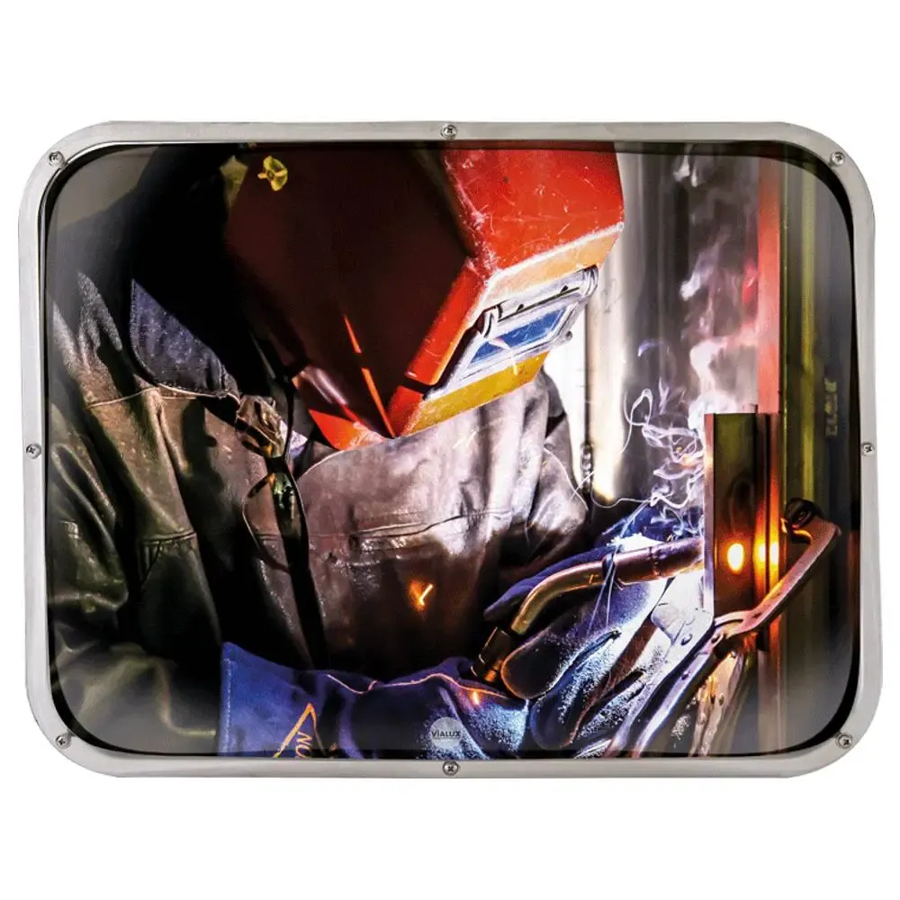 Estos espejos son especialmente utilizados en empresas de altos hornos o fundiciones porque están fabricados en unos materiales que resisten hasta 400ºC manteniendo sus propiedades.