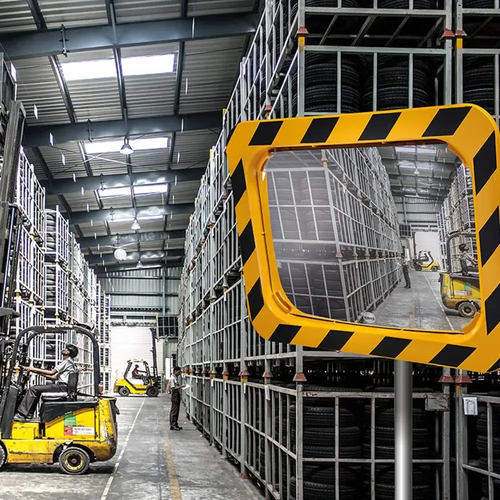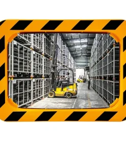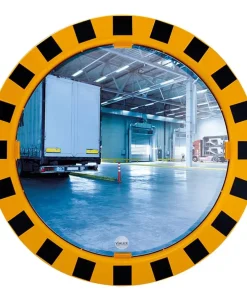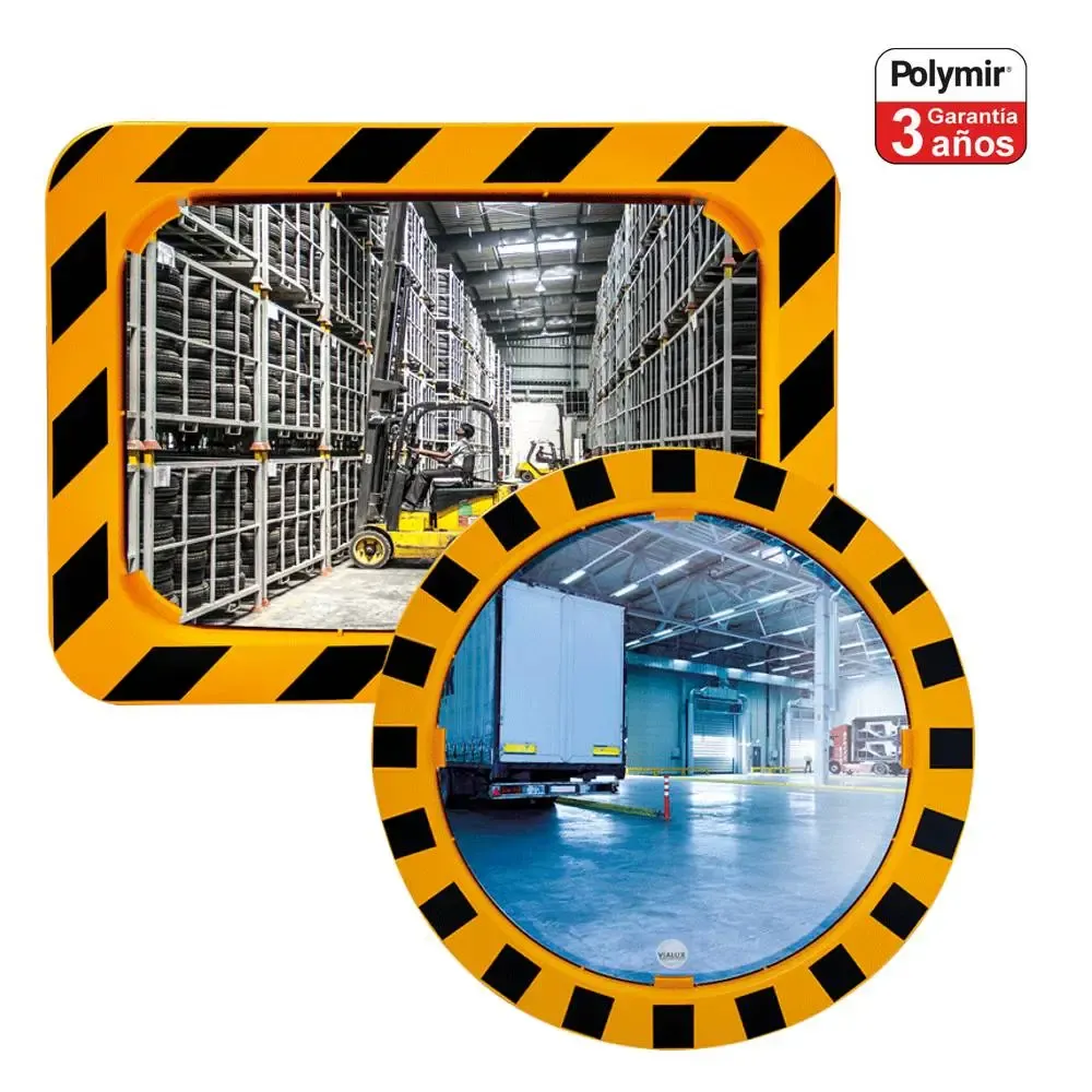 Espejos para mejorar la visibilidad en zonas conflictivas con poca visibilidad o puntos muertos con un marco en franjas amarillas y negras y calidad polymir con 3 años de garantía
