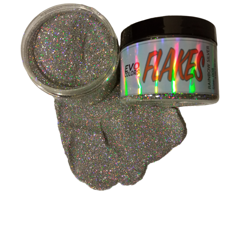 Los Metal Flakes Silver Rainbow, tienen un acabado plata con tonos multicolor