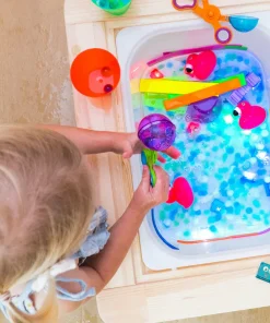 Perfectos compañeros de juego en una mesa sensorial para trabajar la relación causa/ efecto o en una botella de la calma, fomentando la psicomotricidad fina y el reconocimiento de colores. Pero no pierdas la oportunidad de darte un baño relajante con sólo la luz de los Glopals. Hasta a los peques más rebeldes al agua les fascinará.