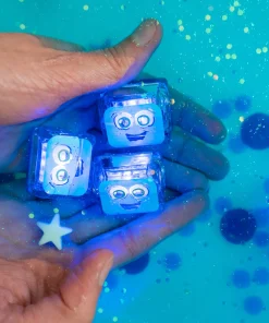 Los 4 cubos de luz azul Glopals brillaran dentro del agua siendo tan sencillo apagarlos como sacarlos del agua.