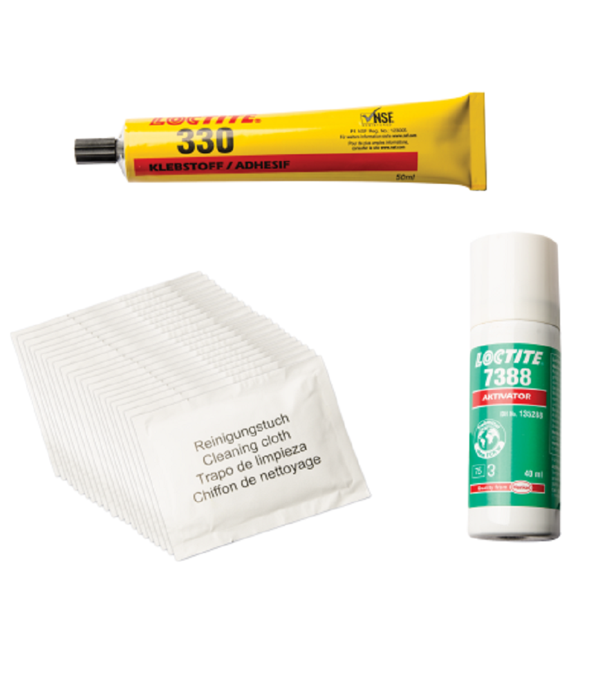 Kit adhesivo detector de rotura de cristal laminado (pegamento y toallitas de limpieza).