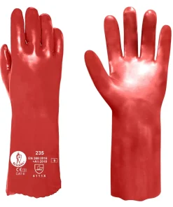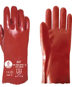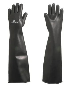 Guantes químicos de Categoría III fabricado en nitrilo sin soporte y flocado en interior para trabajos con productos químicos y líquidos con gran resistencia mecánica.