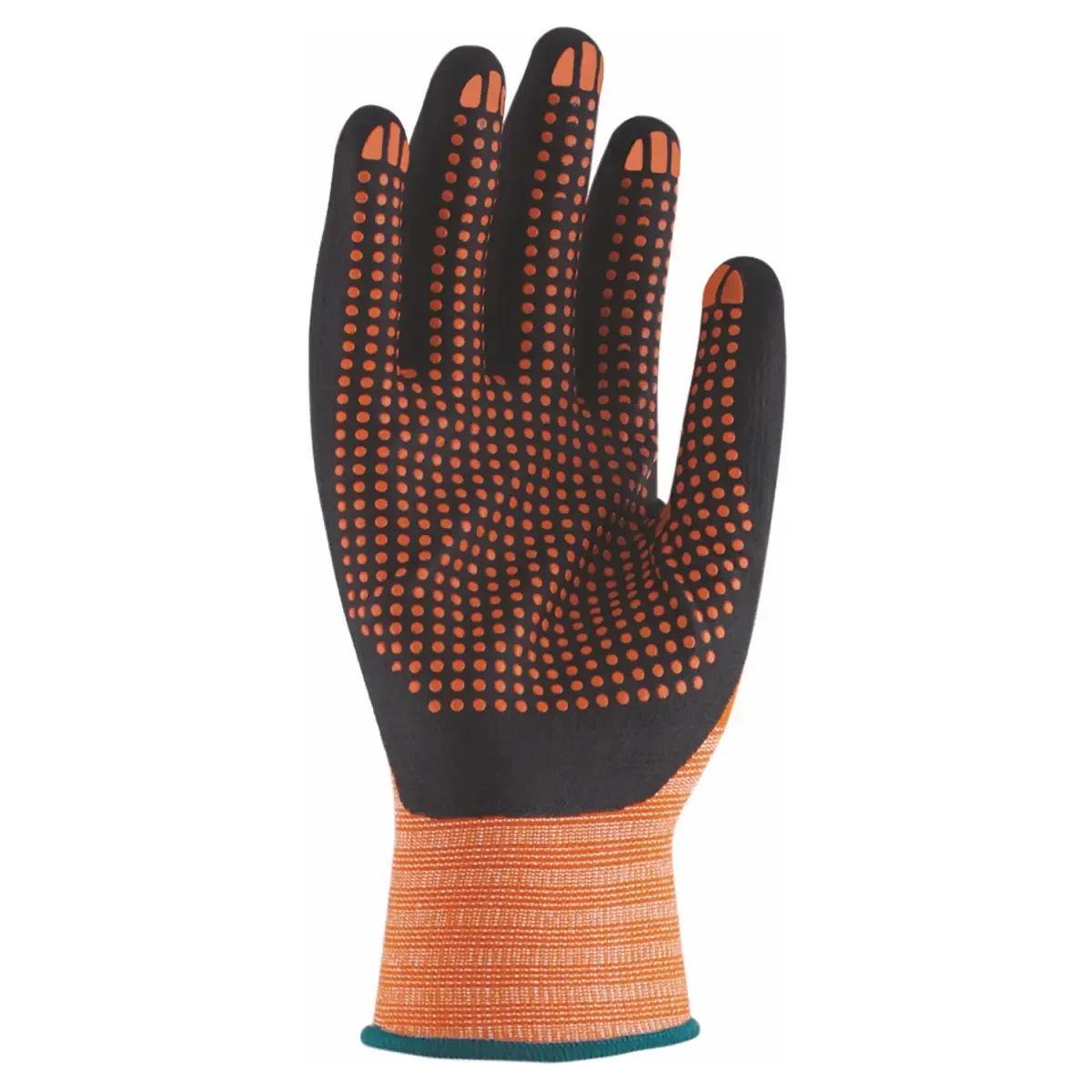 La palma está recubierto de foam con una buena resistencia ante la abrasión, el dorso de textil transpirable para evitar la sudoración y en la palma hay unos pequeños puntos de nitrilo que le dan una propiedad antideslizante a superficies resbaladizas.