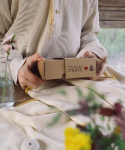 Grapat es un proyecto familiar, que surge del amor y la familia, y eso se nota. Una empresa española que crea sus piezas de forma artesanal, según procesos de fabricación tradicionales y con materiales sostenibles de proximidad procedentes de la UE. Cada una de sus preciosas creaciones de madera nace y se inspira en la naturaleza y se tiñe a mano, con elementos naturales, en sus talleres.