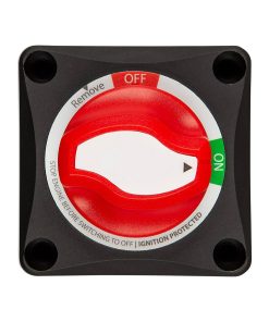 El Interruptor Batería Victron 275 Ah está diseñado para sistemas de baterías de hasta 48 V, puede usarse para aislar una batería de las cargas o de las fuentes de carga CC, para conservar la carga de la batería durante tareas de mantenimiento o en caso de emergencia y además, puede usarse para conectar en paralelo la batería auxiliar a la de arranque para compensar una batería de arranque o auxiliar descargada en caso de emergencia. Está fabricado en plástico ABS de gran resistencia, con un diseño estético y ergonómico. Cumple con la normativa ISO8846. Su instalación se puede hacer sobre un panel o una superficie.