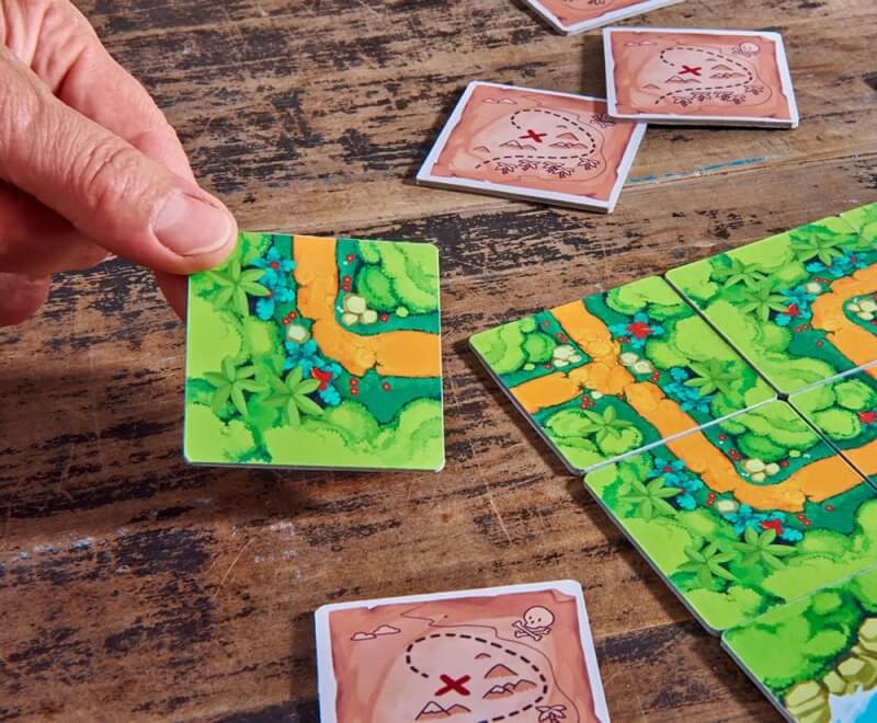 Tendrán que conseguir colocar las fichas de modo que puedan llegar a todos los tesoros, antes de que los crueles piratas atraquen en la isla.