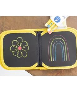 El tamaño compacto, ligero y flexible de esta pizarra permite llevarla de viaje, de vacaciones, de excursión o a salidas familiares. Los y las peques podrán escribir y dibujar en cualquier lugar una y otra vez, desarrollando así su imaginación y creatividad y mejorando al mismo tiempo sus habilidades motoras.