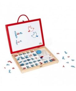 Una pizarra blanca borrable y magnética para aprender a escribir sus primeras palabras.