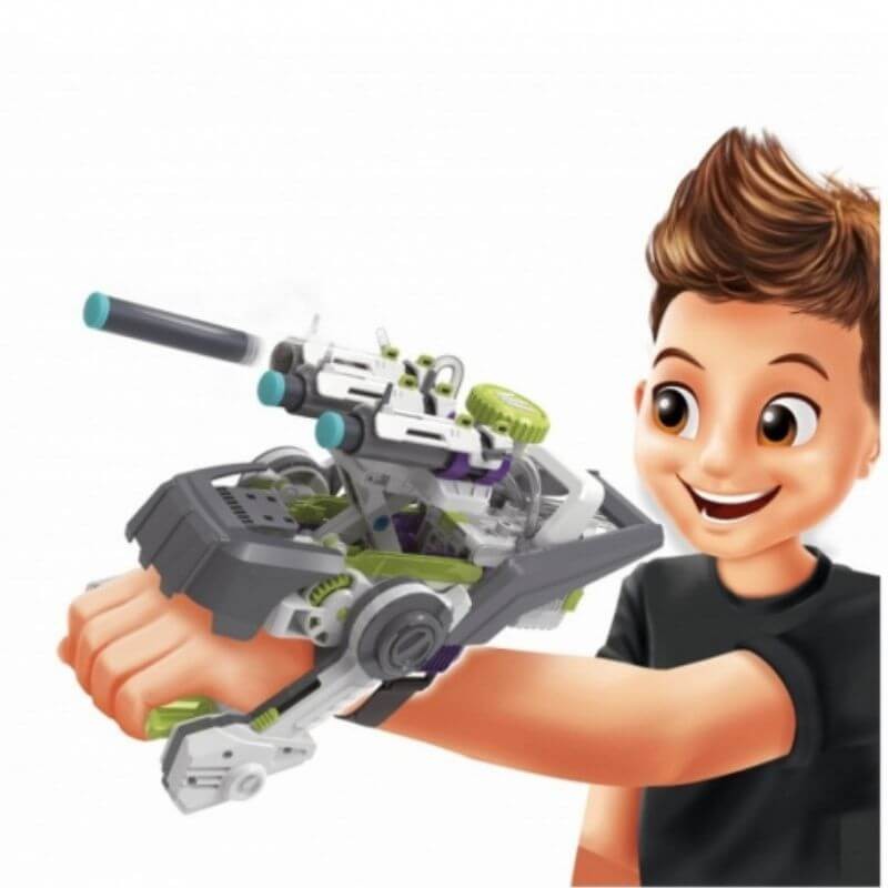 Ensamblas las piezas y construye un blaster manual impulsado por energía neumática.
